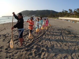 砂浜で漕ぎ方の練習をして、来週すぐに乗れる様にしておきましょう!