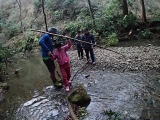 長い枝を持って来て川に渡したり、目標地点を決めてそこまで行ってみよう!!