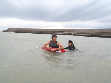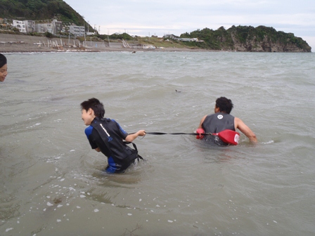 水の中で人を引っ張る、連れてくるとかという作業の大変さを少しでも感じてくれたかな。