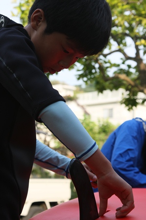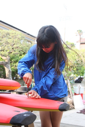 まずは自分たちで、ボードの仕組みを理解して、フィンを付けてみます!