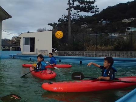 台風はそれて、午後からは晴れ間も見えてきた。今日もACADEMYではプールで元気よく、POLOしましたね! 今日は基本操作に加えて、ボールを使った練習になります。パスからはじまり、簡単なゲームまでやりましたよ! みんななかなか上手に乗れていましたね!でも、ゲームを行った時には、チンしたメンバーもいました。別にチン(ひっくりかえること)は悪くないよ!どんどん積極的にやろう!がんばれ!チンした時には、あわてない。これも大切だよね。水の中で、パニックすることが一番怖いからね。気をつけましょう。なんで、落ちたのかよく考えると、次のステップにつながるからね。 来週の木曜日チームはBillコーチの時間だよ。風邪ひかないようにね!今村コーチ